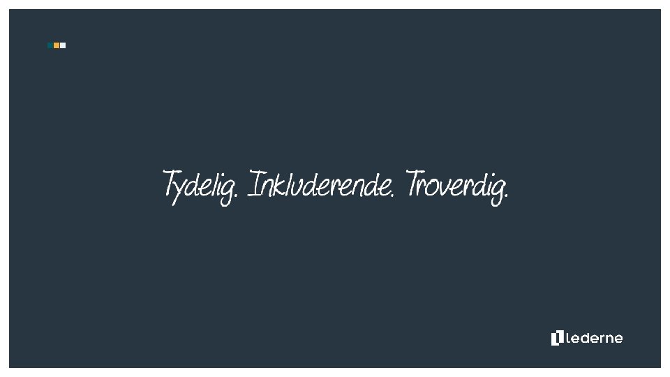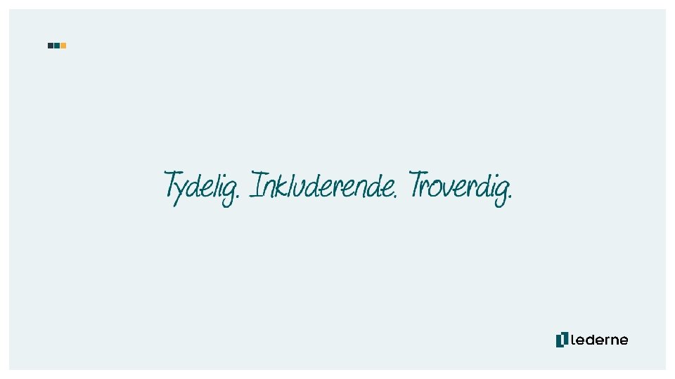 Strategisk historie Dette er Lederne er en partipolitisk uavhengig organisasjon for ledere i norsk arbeidsliv. I mer enn 100 år har Lederne støttet medlemmene våre når de trenger det. Det skal vi fortsette med. Vår visjon er å bygge gode ledere. Synet på ledelse endrer seg i takt med endringene i arbeidslivet. Ledelse handler om noe vi gjør – ikke bare om den tradisjonelle begrensningen til personalansvar og titler. Gode ledere tar ansvar og er oppriktig interessert i menneskene rundt seg. De skaper resultater ved å spille andre gode. De lytter, lærer og deler. De er beslutningsdyktige, tydelige og ærlige. De motiverer til innsats for felles mål. Gode ledere er rollemodeller for andre. God ledelse skaper verdier for Norge og trivsel på små og store arbeidsplasser. Med gode ledere får vi færre konflikter. Gode ledere bygger et bedre samfunn. Lederne tilbyr lederutvikling og tilhørighet for ledere på tvers av bransjer og på alle nivå. Lederne skal bygge bro og fremme lederes interesser i arbeidslivet. Sammen skal vi bidra til mangfold og skape rammer for god ledelse. Vi skal være tydelige, inkluderende og troverdige - egenskaper vi ønsker av ledere på arbeidsplassen. Lederne – vi bygger gode ledere