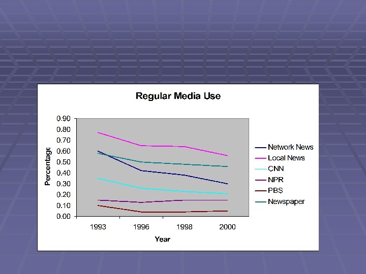 TV News Viewers § In 2006, the median age of nightly news viewers stayed at roughly 60 years § TV News desperately wants to attract younger viewers without losing older ones