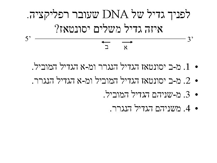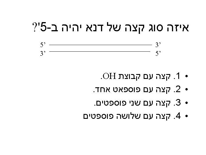 DNA SYNTHESIS REACTION שאלה P CH 2 P Base O 5' end of strand CH 2 P Base O P CH 2 O Base CH 2 Base O H 20 + 3' P Synthesis reaction P 5' CH 2 3' OH P P OH P products O CH 2 O P Base OH 3' end of strand