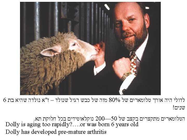 Telomere ● ● ● ● senescent cells have shorter telomeres תאים מזדקנים בעלי טלומרים קצרים length differs between species אורך הטלומר משתנה בין מינים שונים in humans 8 -14 kb long 8 -14 באדם אורכו בין telomere replication occurs late in the cell cycle ● עד 40 - מחלוקה אחת לשנייה מתקצרים הטלומארים ב . נוקלאוטידים 200
