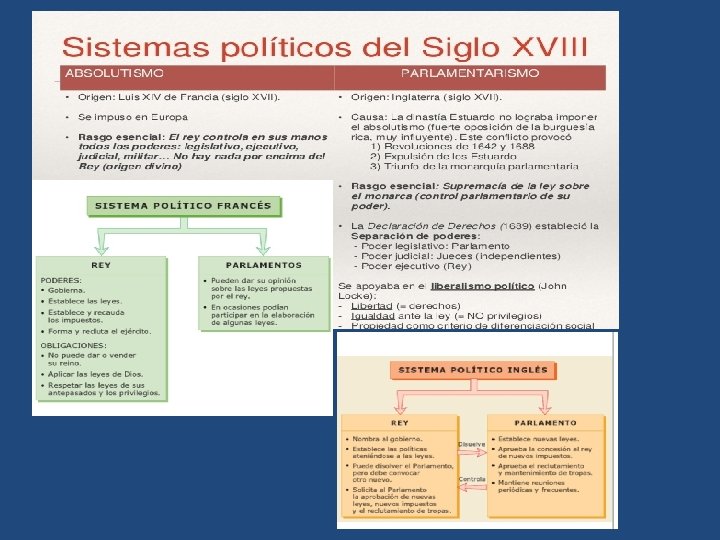 - El parlamentarismo inglés • En Inglaterra hubo un largo enfrentamiento entre la Corona y el Parlamento. De hecho, el parlamentarismo británico fue el fruto de las revoluciones iniciadas en el año 1642 y que culminaron en 1689 con la aprobación de la Carta de Derechos (Bill of Rights) por la que el poder del rey quedaba sometido al Parlamento. • Todo comenzó con el intento de la dinastía Estuardo de instaurar una monarquía de corte absolutista, sin someterse al control del Parlamento, lo que llevó a una serie de guerras civiles o revoluciones: