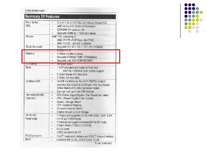 6. EL MANUAL DE LA PLACA BASE l El manual de la placa base es fundamental en el montaje y configuración de un ordenador, ya que nos informa de sus características: procesadores que soporta, memorias, posibilidades de expansión, etc. l Abrir carpeta documentos, ejemplo manual.