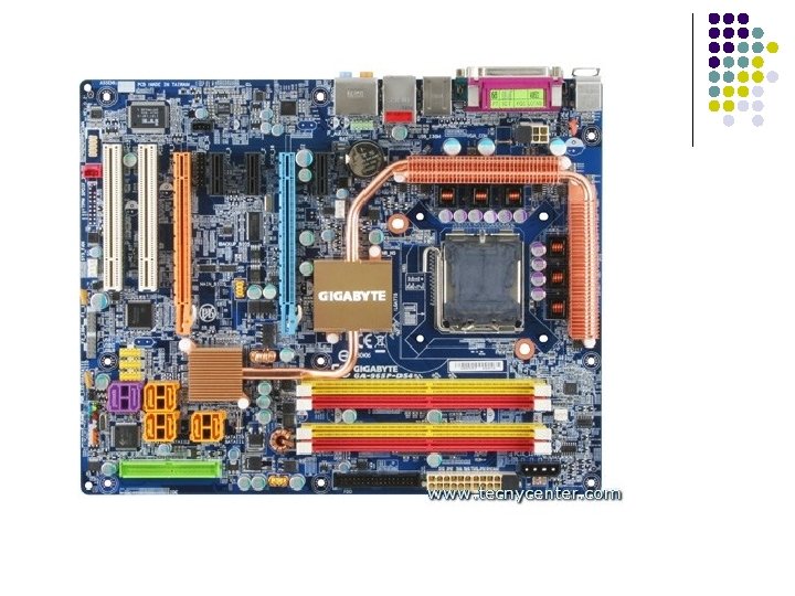 2. COMPONENTES DE LA PLACA BASE a. Zócalo del microprocesador b. Chipset (Conjunto de Chips) l Northbridge l Southbridge c. Ranuras de memoria d. La BIOS o sistema básico de entrada/salida e. Conector de energía f. Puertos de E/S g. Ranuras de expansión h. Buses i. La pila j. Otros conectores