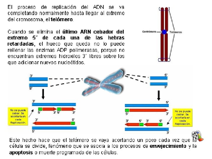 - Terminación. El final de la síntesis viene informado por los llamados tripletes sin sentido o de terminación. Son tres: UAA, UAG y UGA. No existe ningún ARNt cuyo anticodón sea complementario de ellos. Son reconocidos, en cambio, por los factores proteicos de liberación (FR) que precisan gasto de GTP para actuar. Se instalan sobre el centro A y provocan que la peptidiltransferasa haga interaccionar el último grupo –COOH con el agua, con lo queda libre la cadena polipeptídica. A continuación, se separan el ARNm y las dos subunidades ribosomales. Extremo carboxilo Extremo amino terminal: -NH 3+ FR E P A terminal: –COO-