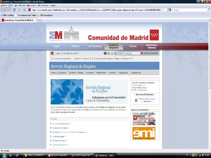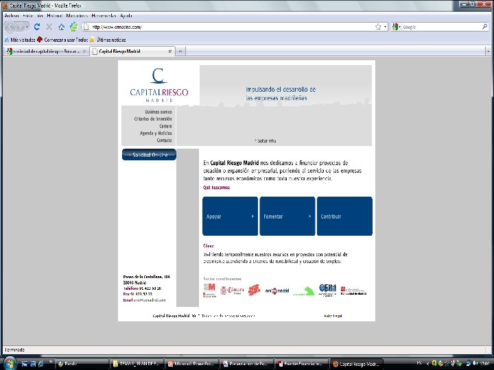 www. madrid. org (Comunidad de Madrid) www. avalmadrid. es (Sociedad de Garantía Recíproca de la CAM). www. redtrabaja. es (Red del emprendedor del Ministerio de Trabajo e Inmigración). www. mityc. es (Ministerio de Industria, Turismo y Comercio). www. circe. es (Dirección General de Política de la PYME). www. ico. es (Instituto de Crédito Oficial)