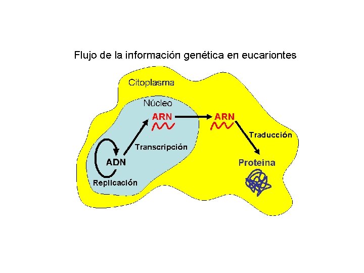 Transcripción en Eucariotas por fases • • La iniciación igual que en procariotas La elongación: tras la unión de los primeros 30 ribonucleótidos se añade una “caperuza” formada por metil-guanosin-fosfato que durante la traducción ( proteína) serán puntos de inicio de reconocimiento de lectura. • La Terminación: la ARN polimerasa transcribe regiones de ADN largas que exceden la longitud de la futura proteína. Una enzima corta el fragmento de ARN que lleva la info para la proteína. La señal de corte es una secuencia AAUAAA llamada señal de poliadenilación. Tras la separación, una enzima ( poli-A- Polimerasa) añade 200 nucleótidos de adenina que recibe el nombre de cola de poli A que parece ser que interviene en la salida del núcleo.