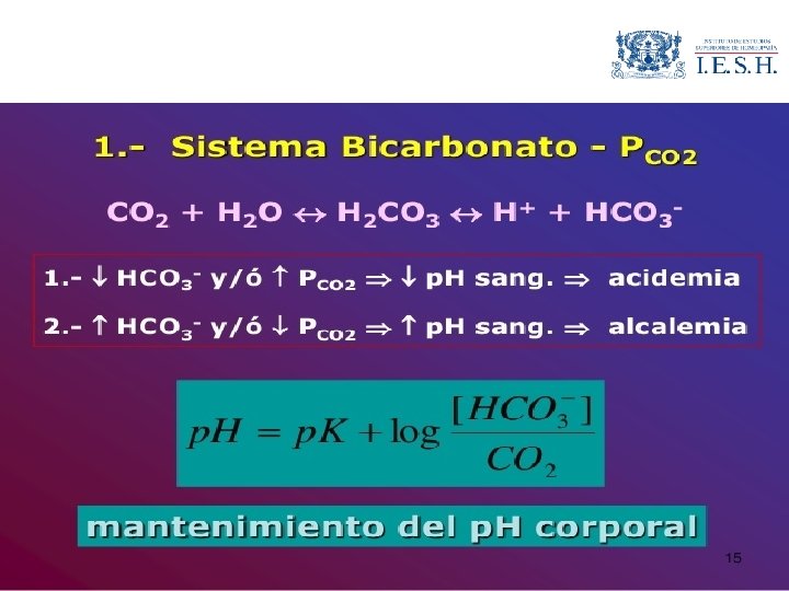 La ecuación de Henderson-Hasselbalch � Es una expresión utilizada en química para calcular el p. H de una disolución reguladora, o tampón, a partir del p. Ka o el p. Kb (obtenidos de la constante de disociación del ácido o de la constante de disociación de la base) y de las concentraciones de equilibrio del ácido o base y de sus correspondientes base o ácido conjugado, respectivamente.