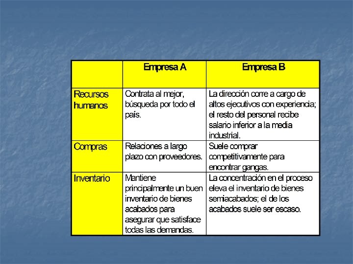 Ejemplo: estrategias en el área de operaciones de dos empresas