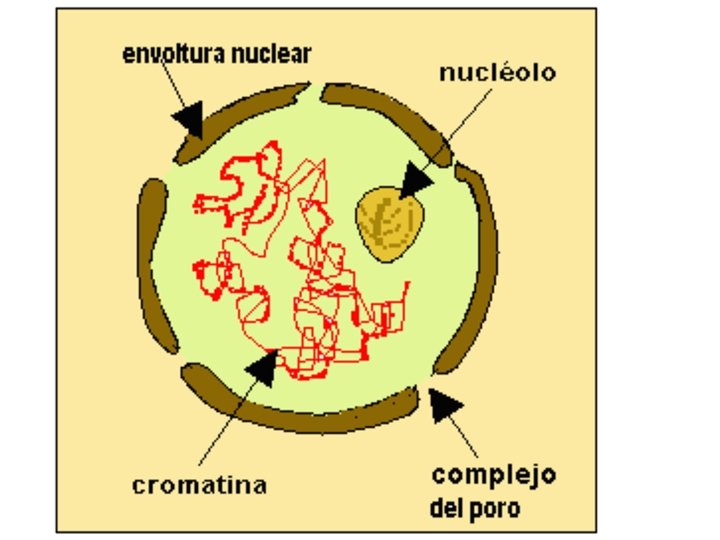 CONSTITUCIÓN DEL NÚCLEO Está constituido por: • Membrana nuclear. • Nucleoplasma. • Nucléolos (uno o varios) • Cromatina( o cromosomas según el momento del ciclo vital de la célula)