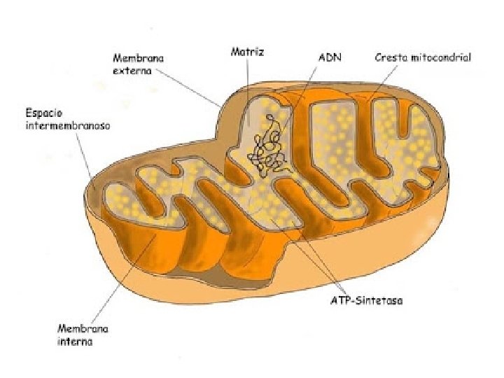 Las mitocondrias: Su conjunto se llama Condrioma. Cada mitocondria está compuesta por una envoltura compuesta por una membrana (doble). En la membrana interna se observa unas prolongaciones denominadas crestas mitocondriales. El espacio interior se denomina matriz. En su interior podemos encontrar ADN mitocondrial y ribosomas mitocondriales. Las mitocondrias son los orgánulos celulares encargados de suministrar la mayor parte de la energía necesaria para la actividad celular, actúan por tanto, como centrales energéticas de la célula y sintetizan ATP a expensas de los carburantes metabólicos (glucosa, ácidos grasos y aminoácidos).