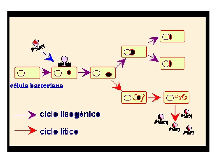 CICLO VITAL DE LOS VIRUS Los virus una vez infectan a una célula, pueden desarrollar dos tipos de comportamiento, es decir, poseen dos tipos de ciclos vitales: 1. - Ciclo lítico. Se reproducen en el interior de la célula infectada, utilizando todo el material y la maquinaria de la célula hospedante, actúan como agentes infecciosos produciendo la lisis o muerte de la célula. 2. - Ciclo lisogénico. Se unen al material genético de la célula en la que se aloja, produciendo cambios genéticos en ella, se les denomina virus atenuados o profagos y no destruyen a la célula huesped.