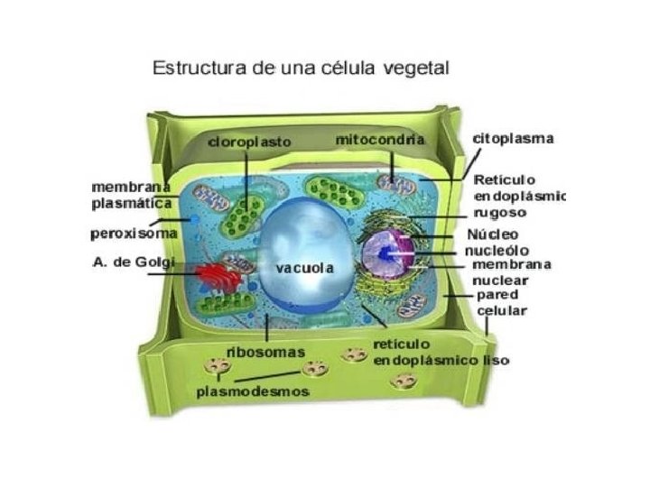 La célula vegetal Vacuolas Son vesículas muy grandes (a veces sólo hay una) rodeadas de membrana y que llegan a ocupar hasta el 90% del volumen Realizan funciones de almacenamiento y ayudan a mantener la forma celular