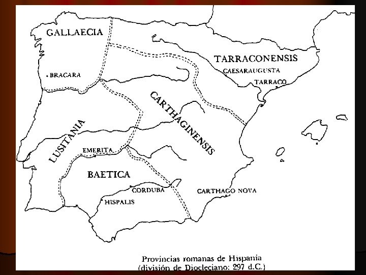 Con la división del Imperio en dos: OCCIDENTE Coincidía con las regiones de lengua y cultura latina, tenía como única sede apostólica la ciudad de Roma. De cultura griega, siria y copta ORIENTE Existían grandes metrópolis de fundación apostolica, llamadas patriarcados, y al frente de cada uno de ellos había un patriarca Alejandría, Antioquía y Jerusalén En el año 381, la capital del Imperio oriental Constantinopla, fue elevada al rango de patriarcado, y en Oriente se le dio la primacía (después de Roma) de que la ciudad era la nueva Roma.