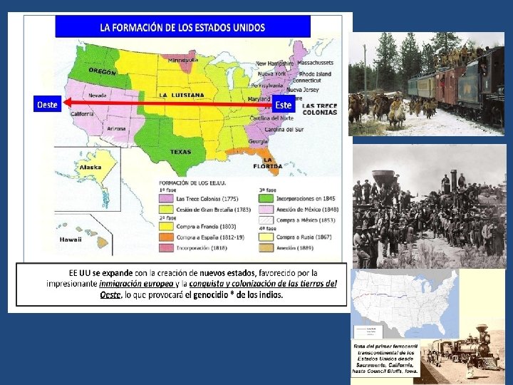 e) Estados Unidos – La transformación norteamericana se aceleró de manera decisiva una vez finalizada su Guerra civil (1861 -1865). Poco a poco fue convirtiéndose en la potencia hegemónica de la economía mundial. Los motivos que explican su rápida industrialización son: • la abundante mano de obra que aportó la afluencia masiva de emigrantes, sobre todo europeos, • el alto grado de mecanización de sus industrias, su concentración empresarial así como el crecimiento de nuevas industrias y • la expansión del ferrocarril hacia el oeste lo que permitiría la conquista de nuevos espacios y el acceso a abundantes materias primas. f) Japón En 1870 inició su proceso de industrialización (Revolución Meiji). Ante la falta de inversores capitalistas sería el propio Estado el impulsor del desarrollo industrial aportando el capital y los medios técnicos necesarios.