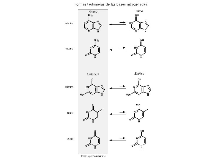 Otras bases nitrogenadas presentes en ARN Las bases son modificadas en reacciones postranscripcionales