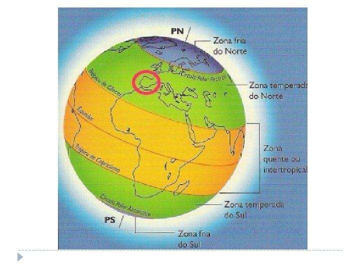 CONCEPTOS PREVIOS � Debido al movimiento de traslación y a la inclinación del eje de la Tierra, hay tres grandes zonas climáticas que responden a tres niveles de insolación. Zona tropical: 0º - 23º 27´ � Zona templada: 23º 27´- 66º 33´ � Zona polar: 66º 33´- 90 � � La zona que recibe un mayor grado de insolación es la intertropical (T. Cáncer – T Capricornio). � La temperatura aumenta según nos acerquemos al Ecuador y descenderá según nos acerquemos a los polos.