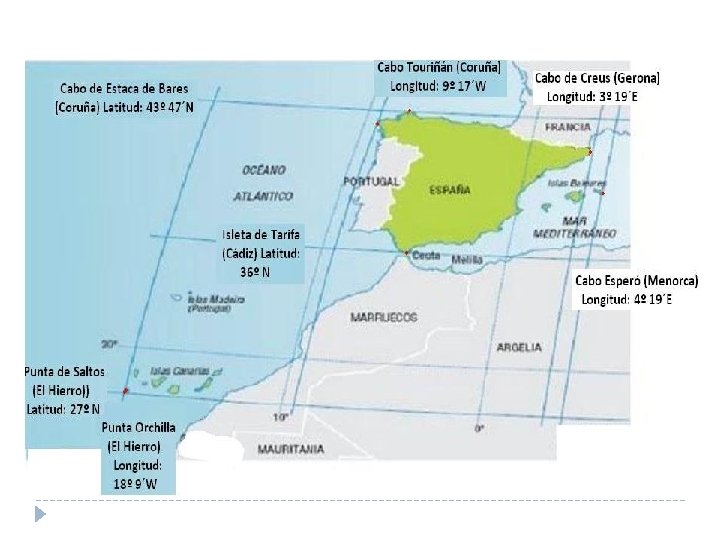 FACTORES GEOGRÁFICOS DEL CLIMA �Los factores geográficos son aquellos que se derivan de la situación geográfica y del medio físico. �Influyen en los climas de España los siguientes factores geográficos: �La latitud �La situación de España �El relieve o altitud �La influencia mar
