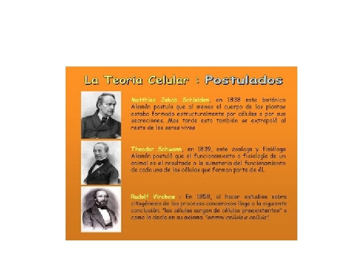 • • 1) La célula es la unidad anatómica 2) La célula es la unidad fisiológica 3) La célula es la unidad genética 4) Toda célula proviene de otra célula ( “omnis cellula est cellula” Virchow)