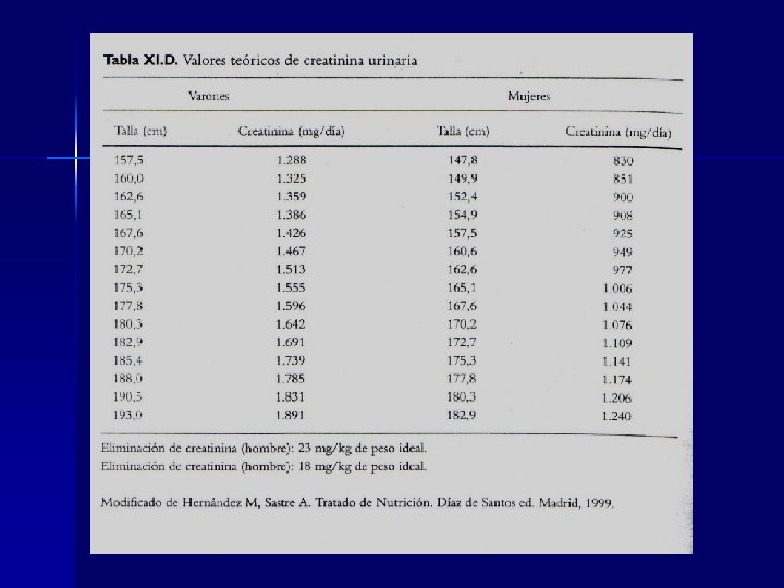 3: 1. -PROTEINA MUSCULAR Consideraciones: hay que asegurar la recogida total de la orina (24 h); existencia de variaciones intraindividuo; recoger al menos la orina de 3 días; dieta restrictiva o no en proteínas, existencia de traumatismos, infección, edad (disminuye al aumentar la edad), insuficiencia renal, tratamientos farmacológicos. . • Dieta *Creatinina-24 h • C. corporal MMC (kg) = 7, 38 + 29, 09 Cr(g/día)± 0, 0008 • Bioquímicos • Inmunológicos • Clínica (Forbes et al. Am. J. Clin. Nutr. 1976) ICA= Cr paciente/ Cr referencia 90 -80% leve 80 -60% moderada < 60% severa (Bristian et al, Surg. Gynecol. Obstet. 1975) *3 -metil-histidina
