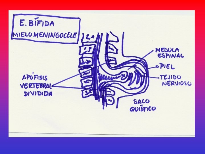 Mielomeningocele Quedan fuera de la columna la médula y las meninges