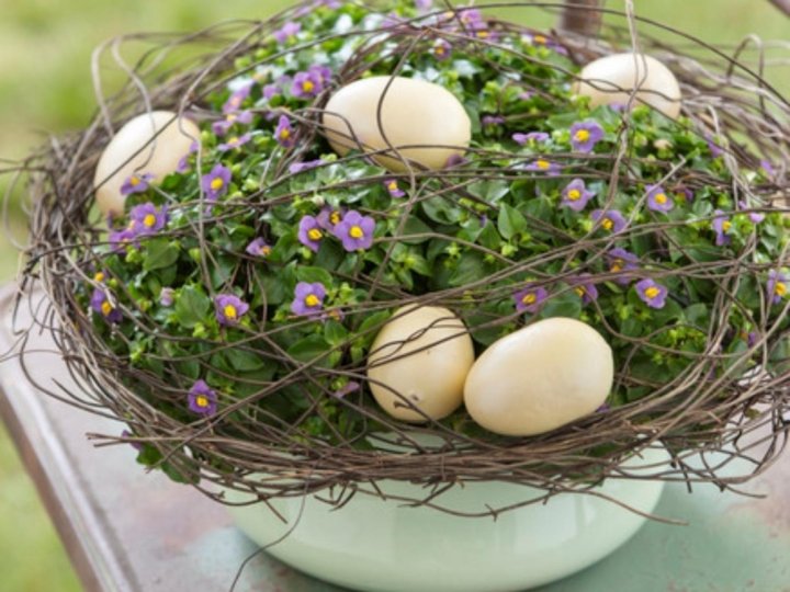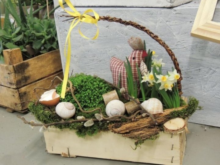 Sesazované jarní a velikonoční dekorace • Náhrada za dekoraci z řezaných rostlin • Výběr vhodné nádoby-nepropustná či vyložená fólií • Zemní substrát vyžaduje drenáž a zálivku • Přihnojování není třeba • Ideální umístění chladnější