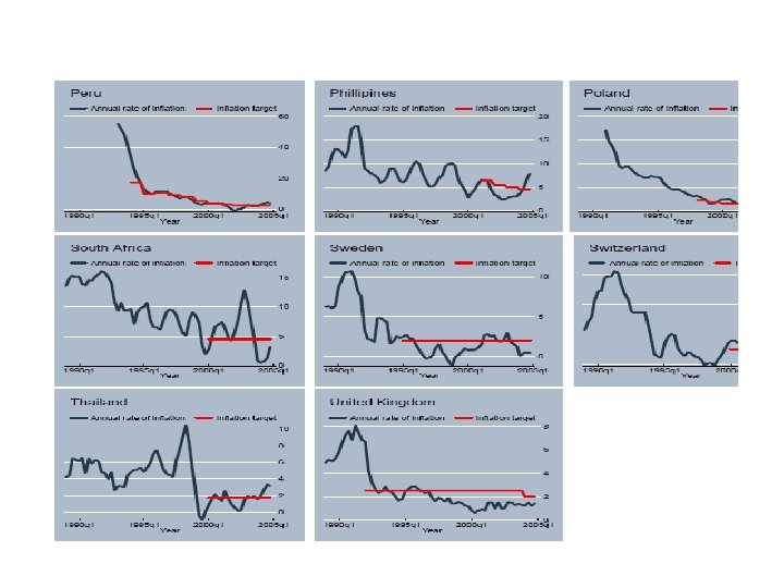 Inflation Targeting • Nuova Zelanda: primo paese nel 1990 • Canada 1991, UK 1992, Svezia e Finlandia 1993, Australia e Spagna 1994 • Israele, Cile, Brasile negli anni seguenti • Eccezioni: Federal Reserve e BCE