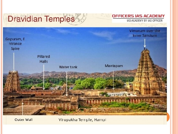 Silapasastras refer to three major styles of temple architecture, Nagara, Dravida, and Vesara v Nagara style is associated with the land between the Himalayas and Vindhyas. Ø Dravida style with the land between the Krishna and Kaveri rivers Vesara style is sometimes associated with the area between the Vindhyas and the Krishna river.