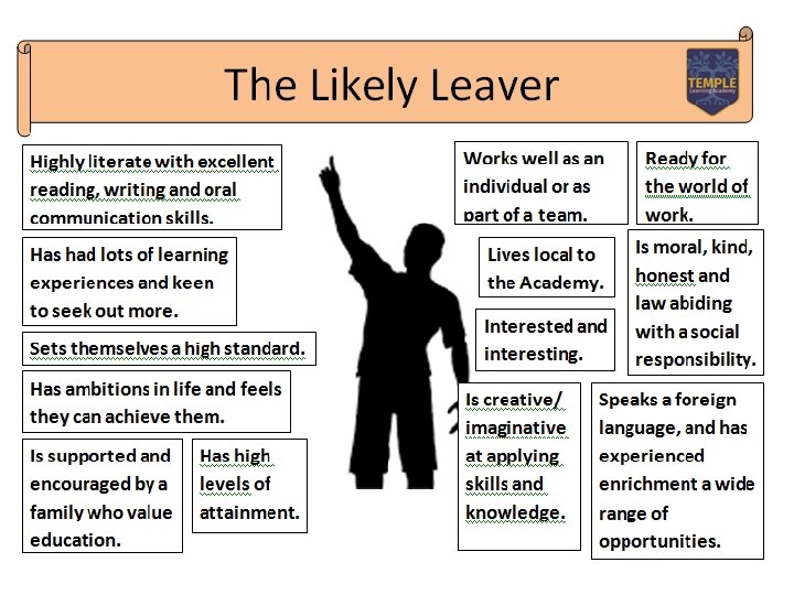 Temple Learning Academy Curriculum Vision Every student will experience a broad, balanced and inclusive curriculum throughout his or her learning journey at Temple Learning Academy. This will enable all learners to acquire and develop knowledge, understanding and skills in English, mathematics, science, humanities, modern foreign languages and the Arts with a love of learning which will lead to successful and satisfying lives. The vision that lies at the heart of the Academy is to be a centre of excellence that will inspire all learners to achieve their full potential and place them in the heart of local, national and global communities. Our earliest curriculum provision ensures our youngest learners achieve the maximum number of Early Learning Goals enabling them to access the National Curriculum in Year 1. They will experience focused and specific English and mathematics provision enhanced with opportunities to learn creatively through play, inside and out, in a language-rich and communicative learning environment they help shape. The focus of the curriculum through Years 1 to 11 is to develop a wide range of skills and will help to foster students’ thirst for learning through inspiring and relevant learning experiences. Through the wide variety of subjects, topics and project based learning opportunities, students will also develop the personal, learning and thinking skills required to they can maximise their success, enabling progression to further education, employment or training. The curriculum will develop creative, enquiring and independent learners adept at problem-solving and team-work, providing a foundation for life-long learning. Students will develop their spiritual, moral, social and cultural awareness through the curriculum. An evolving and reactive programme of Personal, Social, Health, Citizenship education (PSHCE) running throughout the year will promote students maturing into healthy young citizens who will make a positive contribution to society and their local community.