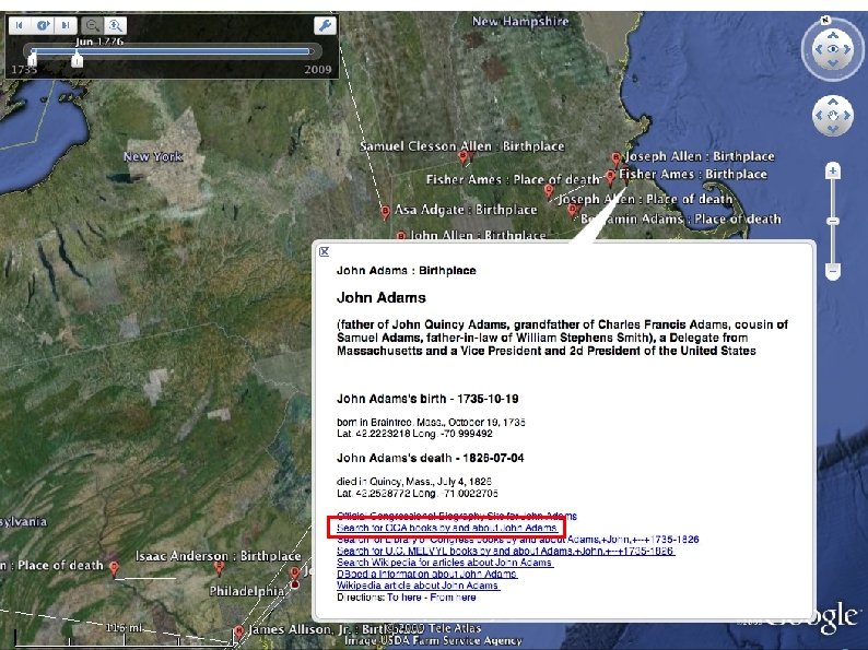 RDF Vocabularies FOAF People BIO Biographical events Geo. Names Places and spatial relationships Basic Geo OWL-Time Dublin Core Latitude and Longitude Temporal relationships Descriptions, dates, etc.