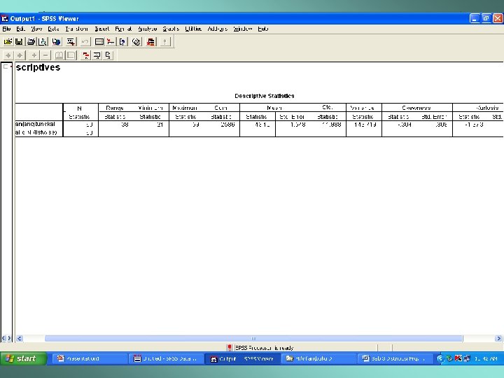 Tujuan Instruksional Umum l Mahasiswa mampu melakukan analisis Deskriptive dengan penggunaan perangkat lunak SPSS