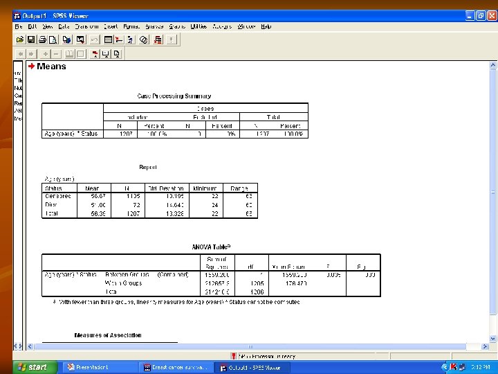 Interpretasi n Dari output hasil analisis menunjukkan bahwa : Rata-rata kolesterol : 209 n Sd : 12. 49 n Probabilitas ( P ) menunjukkan nilai 0, 000 Yang berarti bahwa terdapat perbedaan yang signifikan rata-rata kolesterol penderita hipertensi dengan normal hipertensi populasi. n