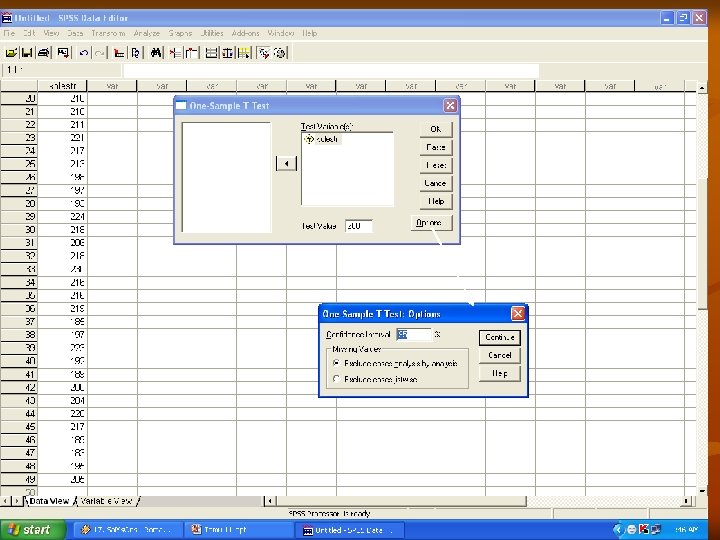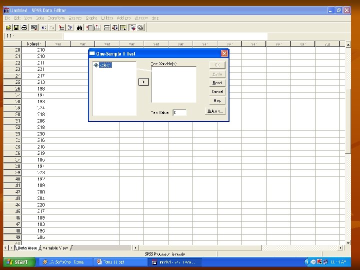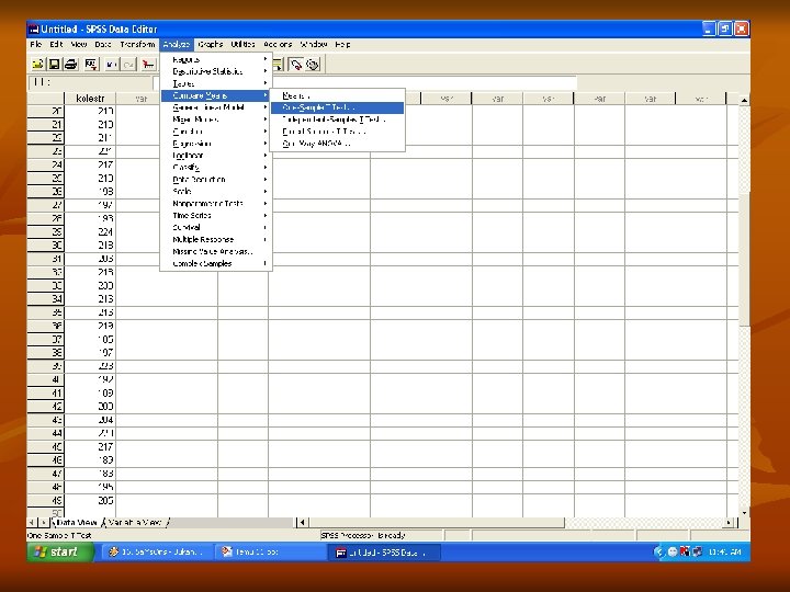 Prosedur n n n Masukkan data Tentukan variabel yang akan dianalisis Pilih analisis compare means One Sample T-Test Lakukan langkah-langkah berikut :