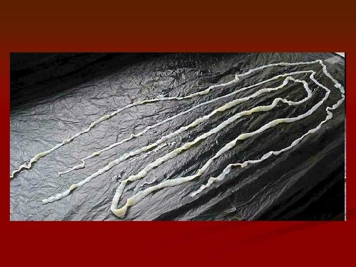 Taenia saginata adult worm. The adult in Figure K is 12 feet long.
