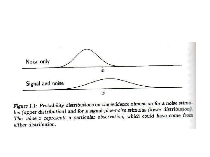 Supuestos de la teoría estadística de la decisión • La evidencia sobre la señal que el observador extrae del estímulo se puede representar con un solo número. • La evidencia extraída está sujeta a variación aleatoria. • La elección de la respuesta se hace aplicando un simple criterio de decisión a la magnitud de la evidencia.
