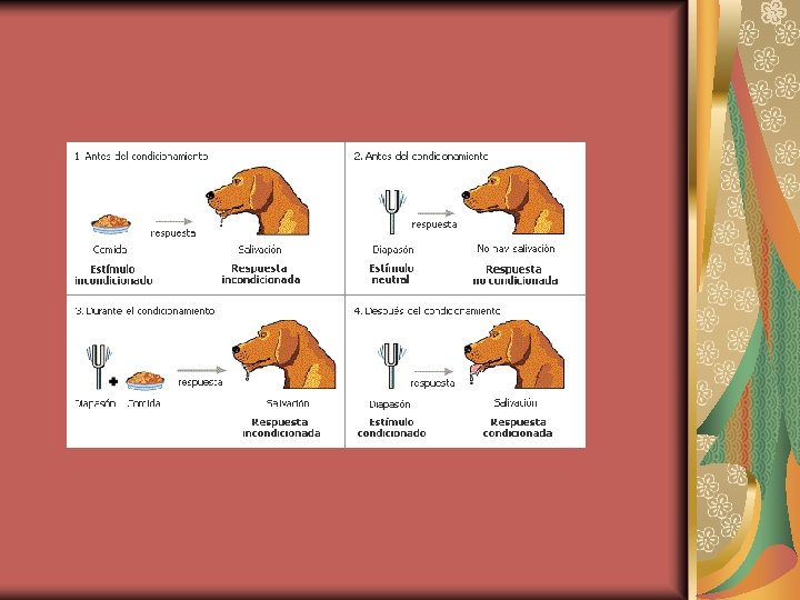 Condicionamiento clásico Etapas; Antes del condicionamiento Durante del condicionamiento Después del conocimiento