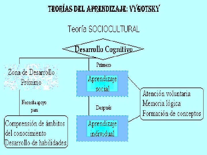 CONCLUSIONES: VYGOSTKY o El conocimiento es un proceso de interacción entre el sujeto y el medio, entendiéndose por medio en sus aspectos sociocultural, no solo el físico. o Las herramientas psicológicas son el puente entre las funciones mentales inferiores y las funciones mentales superiores y, dentro de estas, el puente entre las habilidades interpsicológicas (sociales) y las intrapsicológicas (personales).