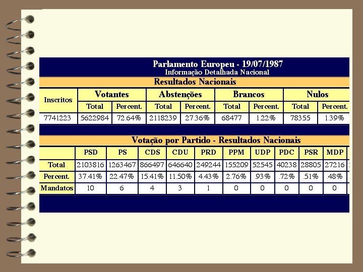 “Perceber como os resultados podem ser diferentes se os métodos de contabilização dos mandatos forem diferentes” • Portugal: Presidência da República - caso Mário Soares/Freitas do Amaral - na primeira volta MS obteve apenas 25% dos votos e FA 40% • Estados Unidos: Presidência da República - caso Gore/Bush - Gore obteve mais meio milhão de votos que Bush.