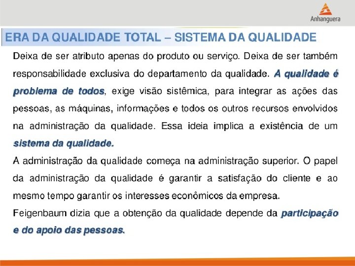 Os 14 pontos de Deming 1. Criar constância de propósitos na melhoria contínua de produtos e serviços 2. Adoção da nova filosofia 3. Não depender da inspeção em massa 4. Cessar a prática de avaliar as transações apenas com base nos preços 5. Melhorar continuamente o sistema de produção e serviços 6. Instituir o treinamento profissional do pessoal 7. Instituir a liderança 8. Eliminar o medo 9. Romper as barreiras entre os departamentos 10. Eliminar "slogans" e exortações para o pessoal 11. Eliminar quotas numéricas 12. Exclua as barreiras entre o operário e o seu direito de mostrar suas habilidades 13. Instituir um vigoroso programa de educação e reciclagens novos métodos 14. Agir no sentido de concretizar a transformação PLT – página 132