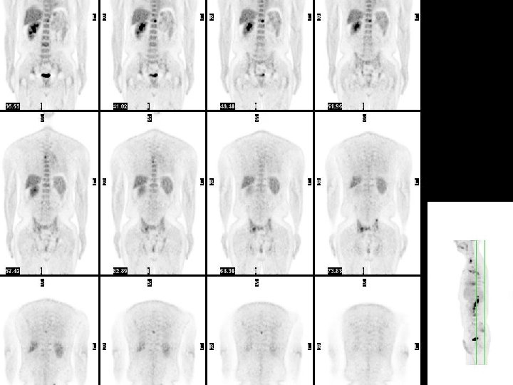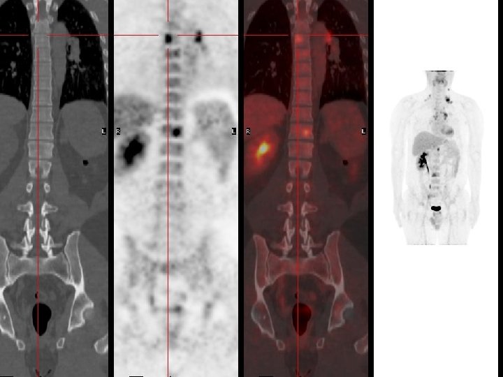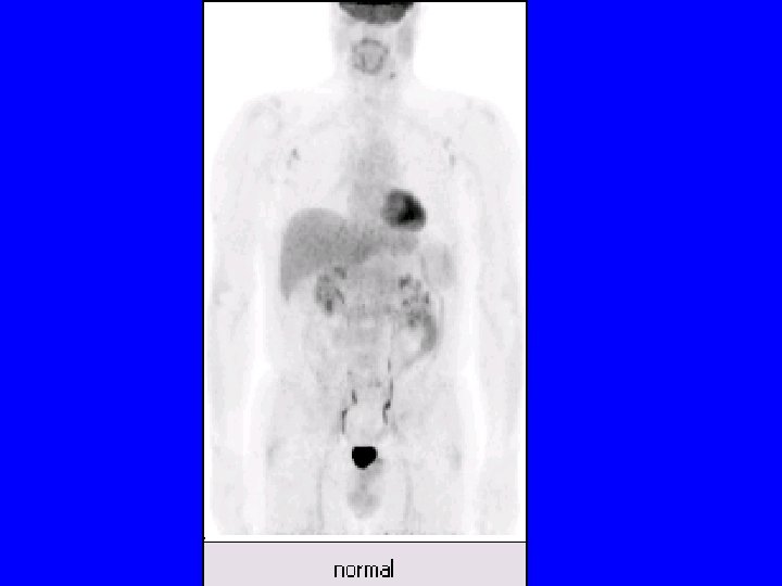 Réalisation technique • • Le patient à jeun et au repos FDG injecté en IV Durée examen # 40 min Acquisition « corps entier » Reconstruction des images Visualisation coupes / 3 plans Corps entier en transparence Calcul éventuel du SUV
