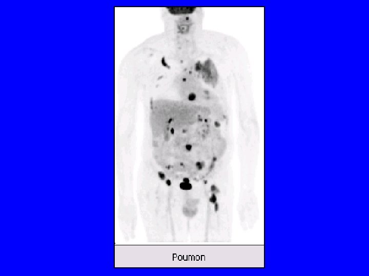 Indications • Diagnostic primaire – Dg différentiel masses pulmonaires – Bilan extension lymphomes H et NH, Kc pulm NPC, ORL et VADS , colo-rectaux, , mélanomes • Suivi thérapeutique précoce – lymphomes H et NH • Récidives et métastases – Kc pulmonaire NPC – Kc colo-rectaux – Kc ovaire…. .