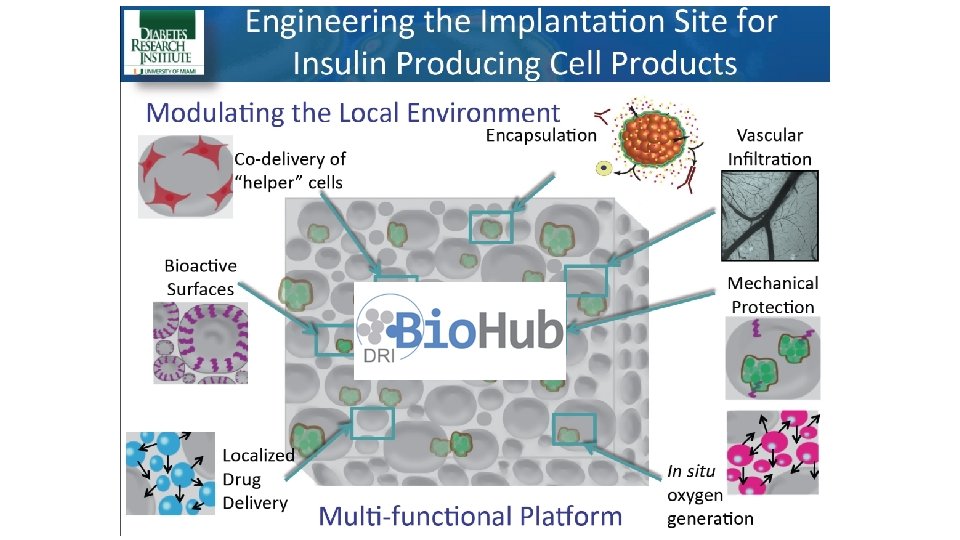 MSCs in the DRI Bio. HUB Strategy BIOLOGIC CURE OPTIMIZATION OF THE TRANSPLANT SITE TOLERANCE INDUCTION REVERSAL OF AUTOIMMUNITY IMMUNOISOLATION SOURCE OF INSULIN PRODUCING CELLS