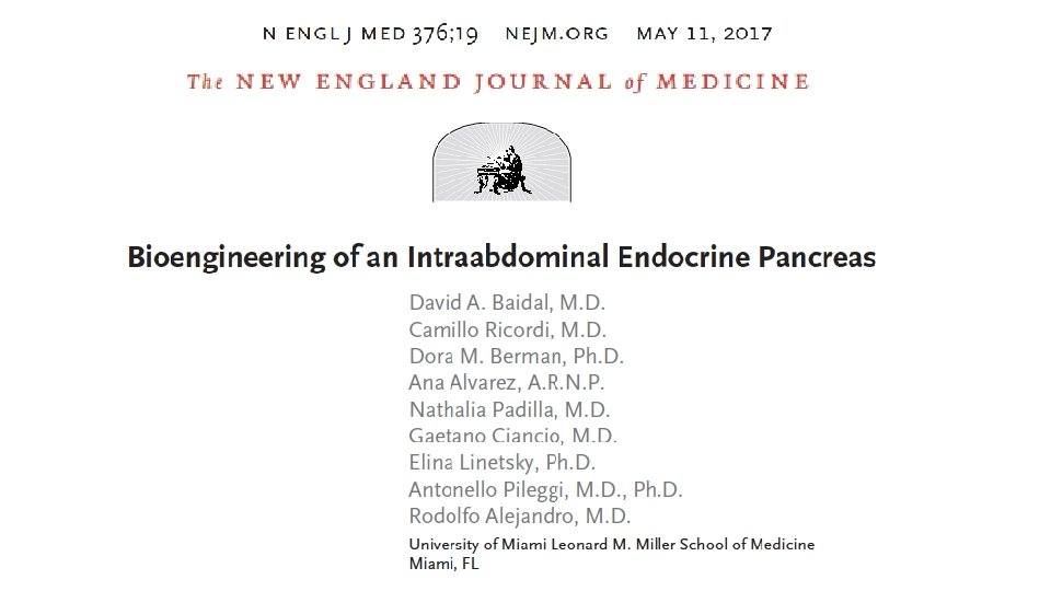 Terapie Cellulari, Immunomodulazione e Medicina Rigenerativa per la Cura del Diabete Camillo Ricordi, MD, FNAI Director, Diabetes Research Institute and Cell Transplant Center University of Miami Chairperson, NIH CIT SC Fellow, National Academy of Inventors ricordi@miami. edu