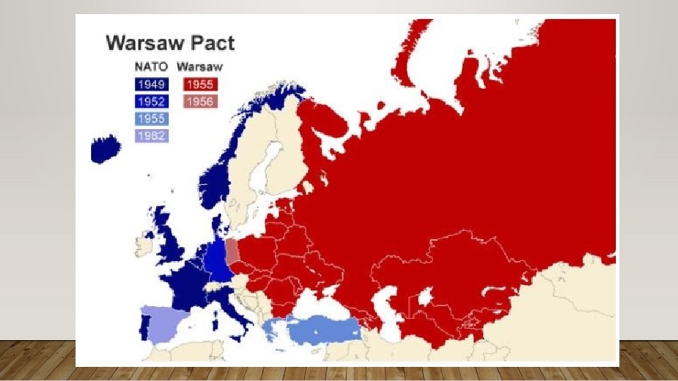 GUERRA FRIA: 1947 -1991 • • • Guerra Fria: contrapôs bloco capitalista liderado pelos EUA ao bloco socialista liderado pela URSS. – 1947: Doutrina Truman. – 1949: OTAN (hoje ainda viva e crescendo!). – 1955: Pacto de Varsóvia (dissolvido em 1991); Não Alinhados (bloco do Terceiro Mundo). – 1962: Crise dos Mísseis em Cuba. – 1962 -1979: Deténte (distensão); descolonização da África e da Ásia. – 1979 -1985: Segunda Guerra Fria. – 1985 -1991: Perestroika e Glasnost. – 1991: Fim da URSS.