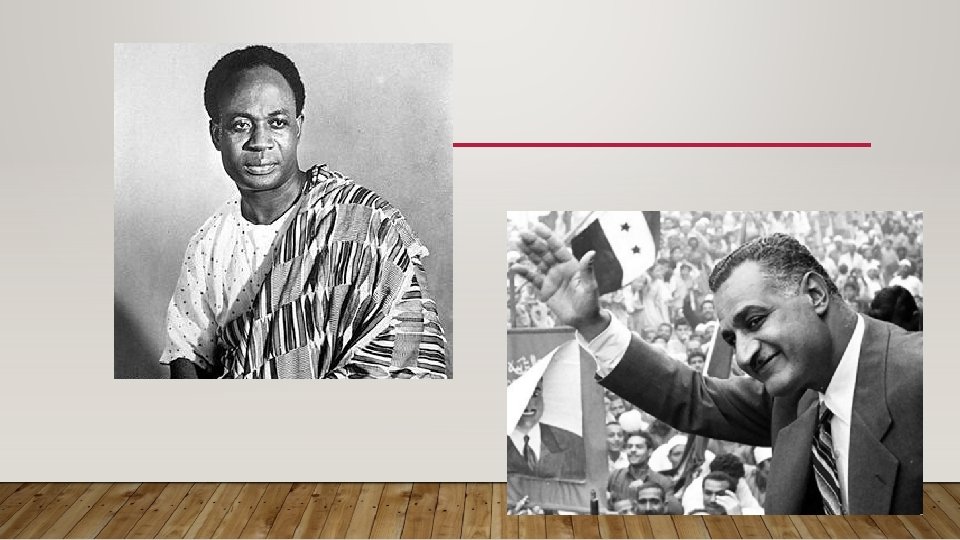 GANA E EGITO (SOBERANIA DOS PAÍSES AFRICANOS) • Gana, apesar da independência negociada, (1957) se transformou em referência para outros movimento anticoloniais no continente africano. • Kwame Nkhruma, estabeleceu uma agenda pan-africana, que tinha como objetivo a cooperação econômica com as nações africanas independentes. • Abdel Nasser, que assumiu a presidência do Egito em 1956, nacionalizou ao Canal de Suez e emergiu também como uma lideranças com discurso de anticolonial, oscilando entre o panarabismo e o pan-africanismo