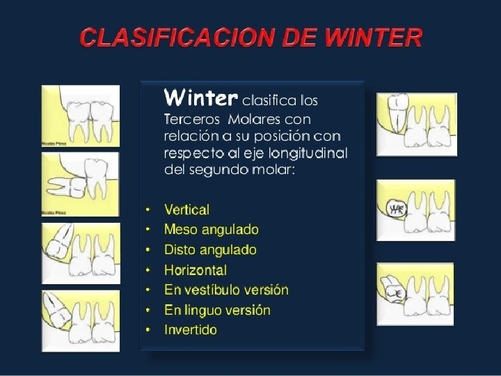 INTRODUCCION La erupción del tercer molar se produce en el inicio de la vida adulta (18 -25 años), por este motivo se le denomina muela del juicio molar de la cordura o molar. Puede existir un retraso aproximadamente 2 años. de la erupción de El tercer molar es el último diente en erupcionar, por lo que facilmente puede quedar impactado o sufrir desplazamientos, si no hay espacio suficiente en la arcada dentaria Es por esto que su exodoncia es uno de los procedimientos mas importantes de cirugía bucal.