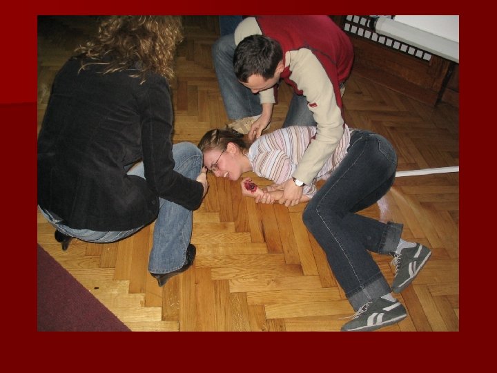 Prva pomoć n Što pre obezbediti hitnu medicinsku pomoć n povređenom omogućiti što više vazduha – olabaviti tesnu odeću oko vrata n ako se onesvesti, postaviti ga u bočni koma položaj; spremite se za KPR