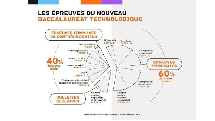 Epreuves terminales 60% de la note 1 épreuve en 1ère anticipée de français (écrit et oral) 4 épreuves en terminales : - 2 épreuves de spécialité - 1 épreuve de philosophie - 1 épreuve orale terminale (modèle actuel du bac)