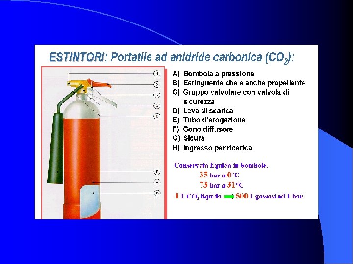 4. - Mezzi antincendio. 4. 1. Attacco di mandata per autopompa. Dispositivo costituito da una valvola di intercettazione ed una di non ritorno, dotato di uno o più attacchi unificati per tubazioni flessibili antincendi. Serve come alimentazione idrica sussidiaria. 4. 2. Estintore carrellato. Apparecchio contenente un agente estinguente che può essere proiettato e diretto su un fuoco sotto l'azione di una pressione interna. È concepito per essere portato e utilizzato su carrello. 4. 3. Estintore portatile. Definizione, contrassegni distintivi, capacità estinguente e requisiti sono specificati nel D. M. 20 dicembre 1982.