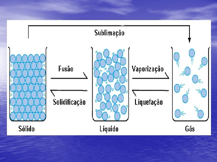 Temperatura (t) Diagrama de mudança de estado Q = m. cv. Dq Q = m. Lv Q = m. Ls Q = m. c. Dq qde calor (Q) Q = m. cs. Dq