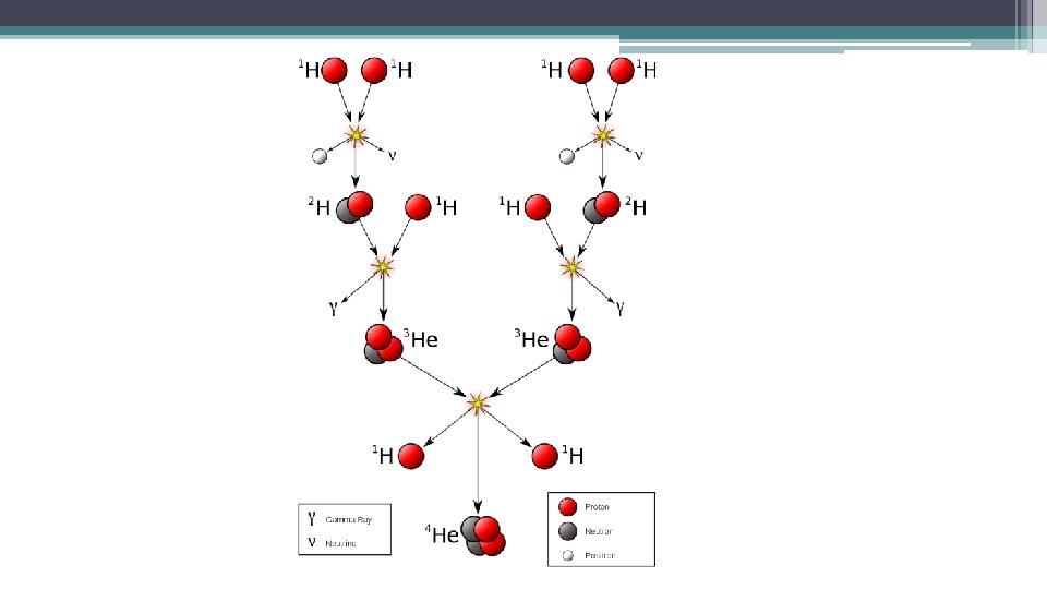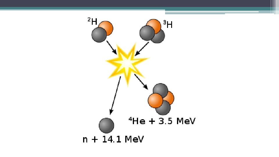 Fúze ve Slunci • T ve slunci = 1, 5 x 107 K (1, 30 ke. V/k) • E potřebná pro uplatnění jad. sil u dvou protonů – cca 400 ke. V/k • Je zapotřebí jevu kvantového tunelování: - popisuje možnost výskytu protonu za bariérou potřebné energie - malou pravděpodobnost vynahrazuje extrémně velký počet částic • Každou sekundu v jádře proběhne sloučení 620 miliónů tun vodíku • Všechny prvky kromě H a He vznikly fúzí